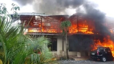 Api menghanguskan rumah milik keluarga Tilaar – Petahiang yang dalam keadaan kosong.
