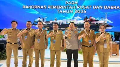 TOMOHON,swararakyat.id – Wali Kota Tomohon Caroll J.A. Senduk, S.H. bersama Wakil Wali Kota Tomohon Sendy G.A. Rumajar, S.E., M.I.Kom menghadiri Rapat Koordinasi Nasional (Rakornas) Tahun 2026 yang mengusung tema “Sinergi Pusat dan Daerah dalam Implementasi Program Prioritas Presiden menuju Indonesia Emas 2045”. Kegiatan ini dilaksanakan pada Senin, 2 Februari 2026, bertempat di Sentul International Convention Center (SICC), Bogor, Jawa Barat.